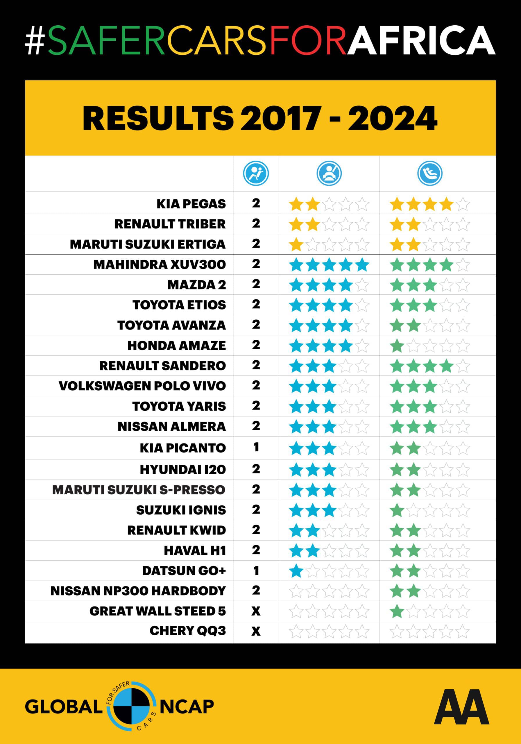Latest #SAFERCARSFORAFRICA results